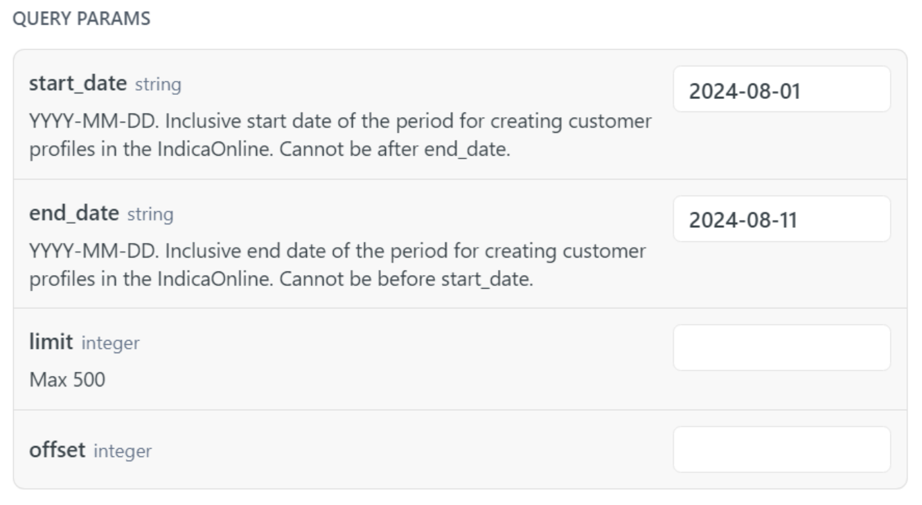 As a result, IndicaOnline will return customers that were created within the specified period.